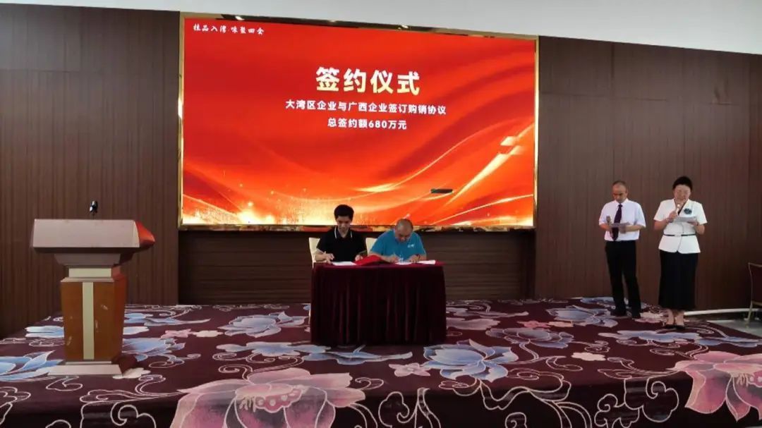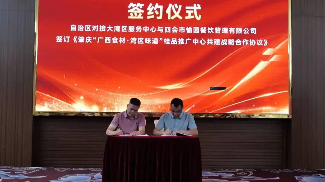 活动中,广西壮族自治区对接粤港澳大湾区确立概括服务中心与四会市愉园餐饮措置有限公司签署《肇庆“广西食材·湾区滋味”桂品彭胀中心共建策略联结合同》,贺州市甄野农业开导有限公司等广西企业与四会市愉园餐饮措置有限公司等粤港澳大湾区企业现场坚决广西优质食材、农副居品购销合同,总签约额680万元。